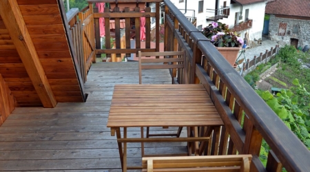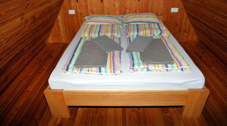 Nastanitveni objekt je v celoti iz lesa; nudi zakonsko posteljo, majhen hladilnik in veliko teraso. Tik ob objektu je čajna kuhinja, vrtno korito in ležalniki. Parkirišče je brezplačno , in sicer tik ob nastanitvi . Enako tudi Wi –fi.